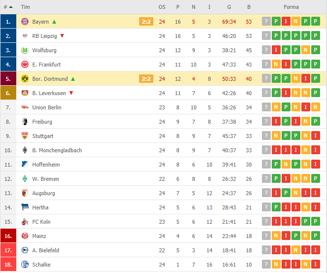 S ovom pobjedom Bayern se vratio na prvo mjesto i trenutno ima dva boda više od Leipziga, dok je Dortmund pao na šesto mjesto, s bodom manje od Leverkusena i četiri od Frankfurta, koji drži posljednje mjesto koje vodi u Ligu prvaka.
