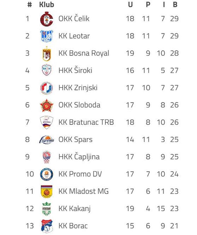 U preostala dva meča slavili su domaćini. Zrinjski je nakon produžetka savladao Bratunac sa 102:98, dok je Leotar savladao Kakanj sa 104:83.